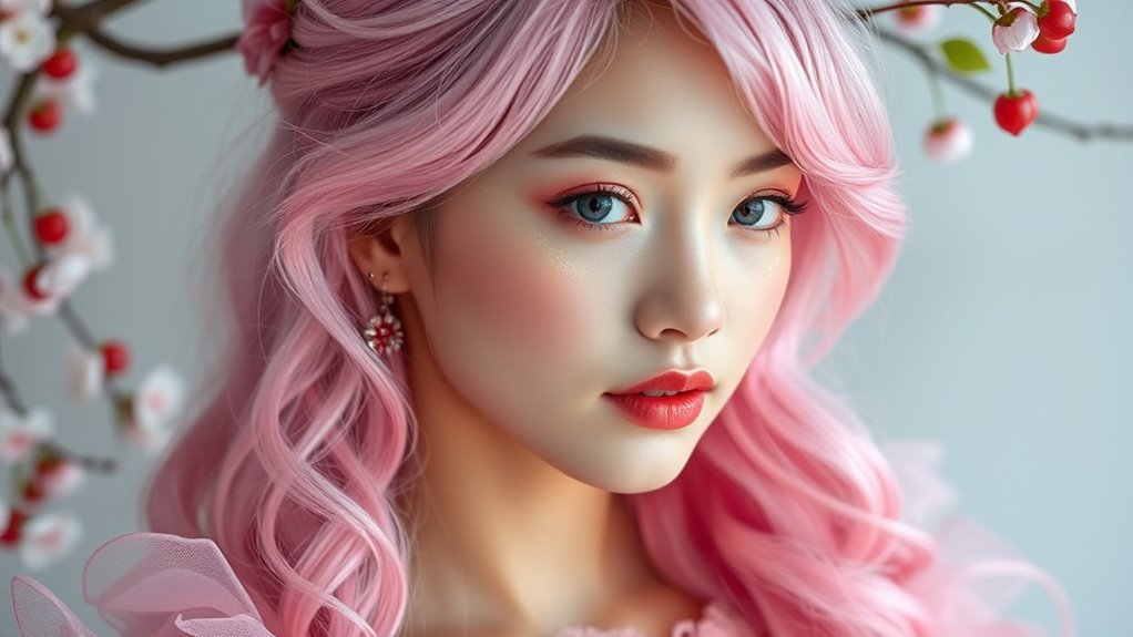 Cultural differences shape how you interpret the cherry girl aesthetic by influencing its symbolic meaning and regional fashion variations. In some cultures, cherries symbolize luck and youth, adding layers of significance. You’ll notice regional styles adapt the trend to local tastes, blending traditional elements with modern flair. This diversity allows you to see the aesthetic’s versatility, making it uniquely personal and culturally rich, no matter where you encounter it.