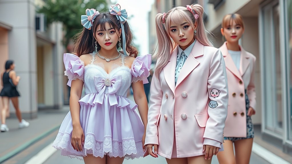 You influence the cultural impacts of kawaii-inspired celebrity fashion by embracing the kawaii subculture in your style choices. When celebrities adopt this playful, cute aesthetic, it spreads awareness and acceptance of kawaii culture globally. This fusion of celebrity fashion with kawaii elements encourages fans to explore their individuality and fosters a more inclusive, creative environment. Ultimately, it shapes trends, challenges norms, and promotes cross-cultural appreciation through vibrant, whimsical fashion.