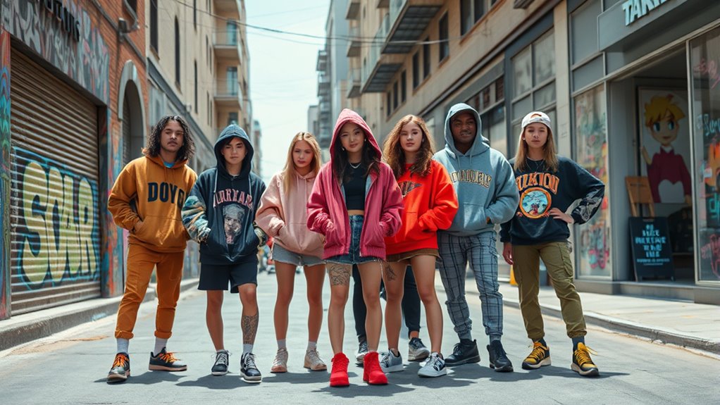 Influencers on TikTok and Instagram now shape fashion trends faster than brands alone ever could. A single post or viral video can spark a new style overnight and push brands to adopt eco-friendly practices or innovative designs. Through collaborations with celebrities and sustainable brands, influencers create buzz that turns niche styles into mainstream must-haves. Their power influences values and future trends, redefining how fashion evolves today. Keep exploring to see how their reach keeps transforming the industry.