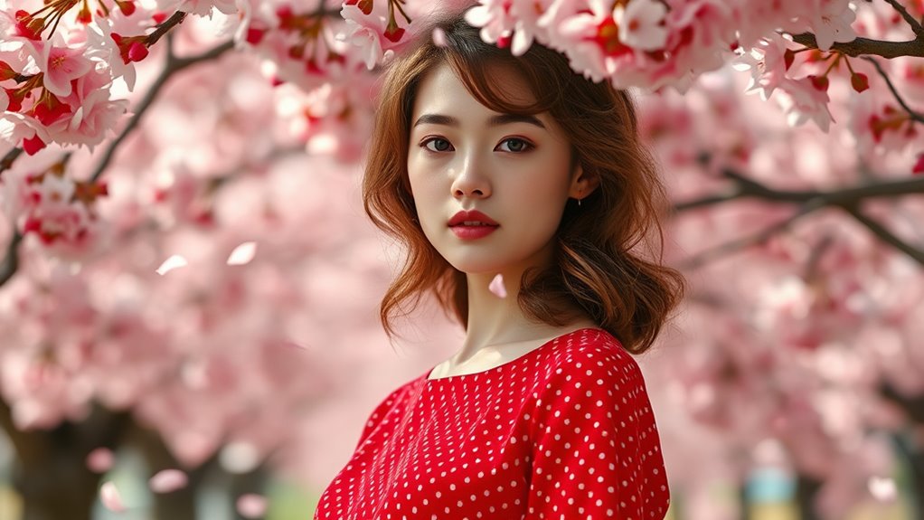 Embracing the cherry girl aesthetic lets you stand out with vibrant reds and nostalgic charm. Did you know that 72% of people say bold colors boost their confidence? By incorporating cherry red and vintage elements, you can transform your style into a playful, eye-catching statement. So, go ahead—drape yourself in these lively hues and nostalgic touches, and watch as your confidence blooms, just like a cherry blossom in full bloom.