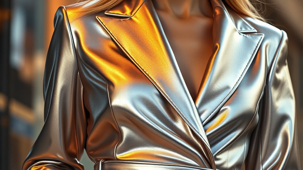 Incorporating metallics into your wardrobe instantly boosts your style quotient, making every look feel fresh and glamorous. Did you know that metallic clothing sales increased by 25% last year, reflecting a growing desire for bold, eye-catching fashion? So, don’t shy away from shimmer—whether day or night. Embrace the shine and let your confidence sparkle just as brightly as your outfit. After all, a little metallic magic can transform your entire look effortlessly.