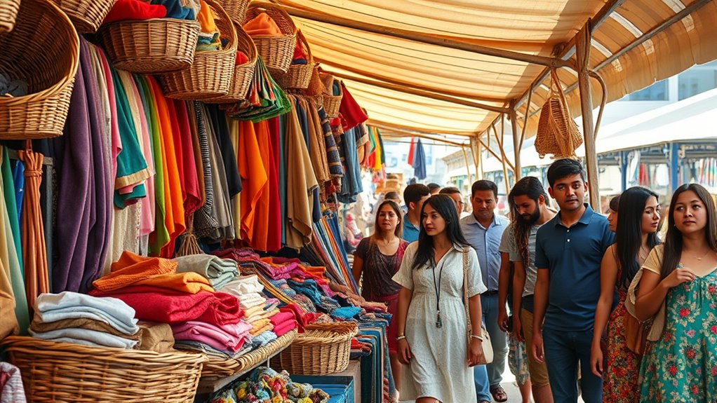 You’ll notice that sustainable fashion costs vary globally due to regional variations and cost disparities. In developed countries, higher wages and stricter regulations often lead to pricier sustainable options. Meanwhile, in developing regions, lower production costs can make eco-friendly fashion more affordable. This disparity impacts accessibility, meaning you might find sustainable fashion more available and affordable in some areas than others, depending on local economic factors.