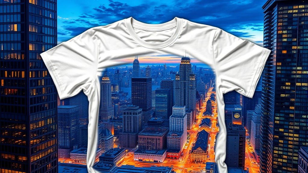 Oversized prints turn your T-shirts into bold canvases for large-scale illustrations and photos that make a striking statement. They help you stand out with eye-catching designs that reflect your personality and interests. Thanks to modern printing techniques like digital, screen, and sublimation printing, these big designs stay vibrant and durable wash after wash. Whether for fashion or interior decor, exploring oversized prints opens up lots of creative possibilities—keep going to discover how to make them your signature style.