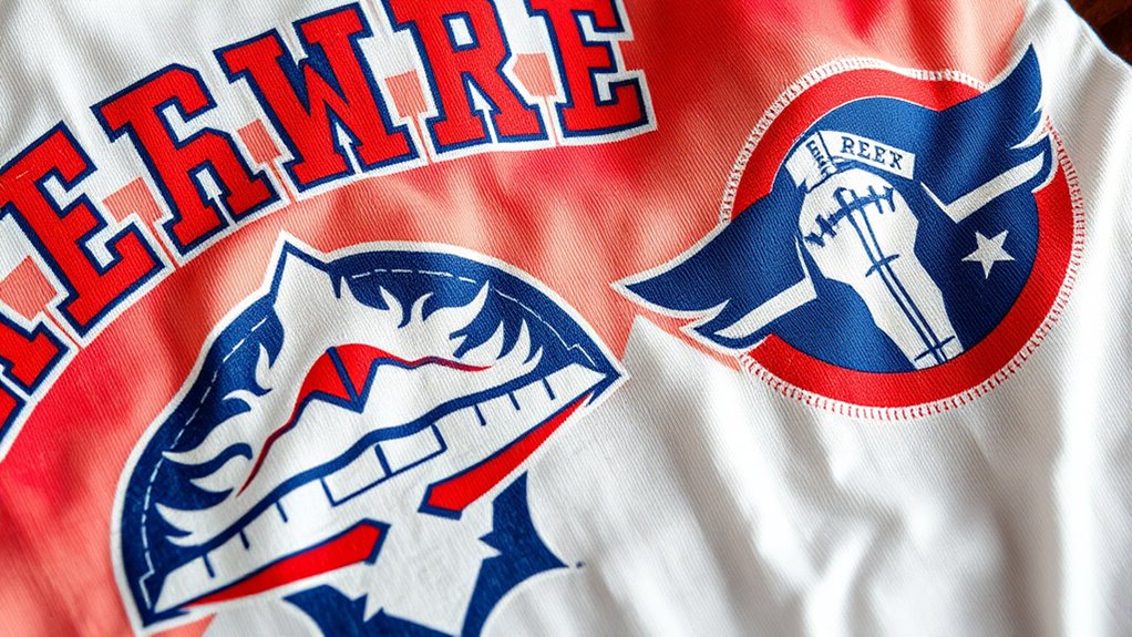 Caring for vintage team logo shirts is like tending a delicate garden—you must be gentle. To preserve the fabric, wash the shirt inside out in cold water and avoid harsh detergents. Spot treat stains promptly with a mild stain remover, and air dry instead of using a dryer. This keeps the fabric vibrant and helps maintain the retro charm, ensuring your shirt stays sharp and memorable for years to come.