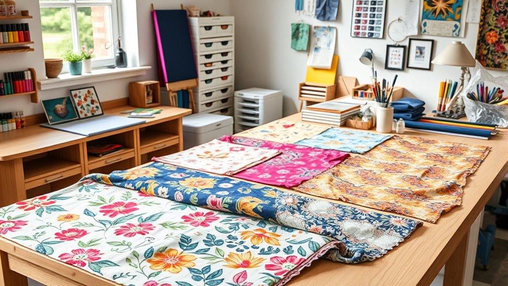 When choosing a fabric printing starter kit, I consider my budget and whether the kit fits my project needs. I also look at the quality of tools, how easy they are to use, and if they can work with different materials. These factors help guarantee I pick a kit that’s both effective and enjoyable for my creative goals.