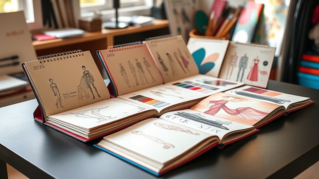 If you’re looking for the 7 best fashion design sketchbooks for 2025, I’ve got you covered. I recommend options like the Fashion Angels Sketch Portfolio, Make It Real kits, and the heavy-weight hardcover sketchbooks with figure templates. These tools are perfect for beginners and aspiring designers, offering quality paper, handy features, and portable sizes. Keep exploring, and you’ll find all the details to choose the perfect sketchbook to boost your creativity and skills.