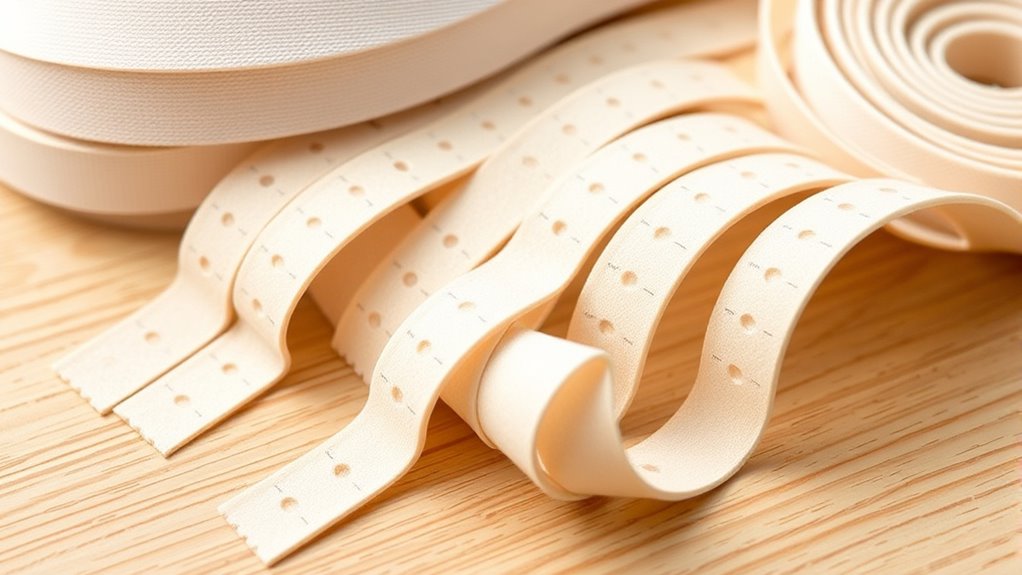 I recommend storing foam hat sizing tapes in a cool, dry place away from direct sunlight. Keep the tapes flat or rolled loosely to prevent deformation. I always keep mine in a small container or adhesive pouch to avoid dust and damage. Proper storage guarantees they stay sticky and effective for accurate measurements, extending their lifespan and maintaining their precision whenever I need them.