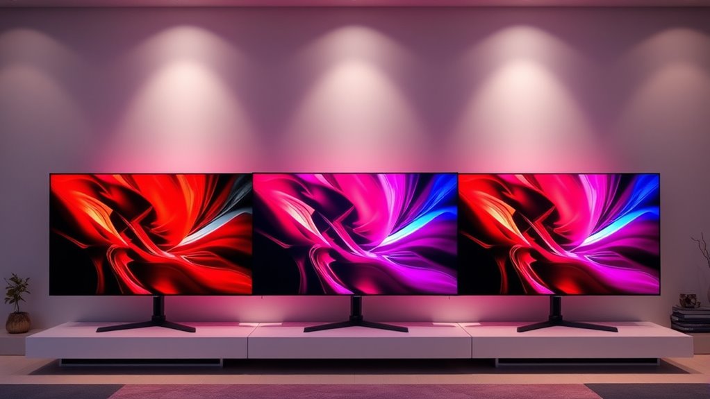 Ever wondered how to pick the right OLED TV size for your space? The key is considering your room size and viewing distance. If you have a spacious living room, a 55-inch or larger TV can create an immersive experience. For smaller bedrooms or compact spaces, a smaller size works better and won’t overwhelm the room. Make sure the TV fits comfortably on your stand or wall mount without dominating the area. Keep in mind that larger screens often need higher resolution and proper calibration to maintain picture quality, especially at close distances. Balance your desired viewing experience with your budget, as bigger OLEDs tend to be pricier but deliver a more cinematic feel. Choosing the right size ensures you enjoy your new TV without any space or comfort issues.