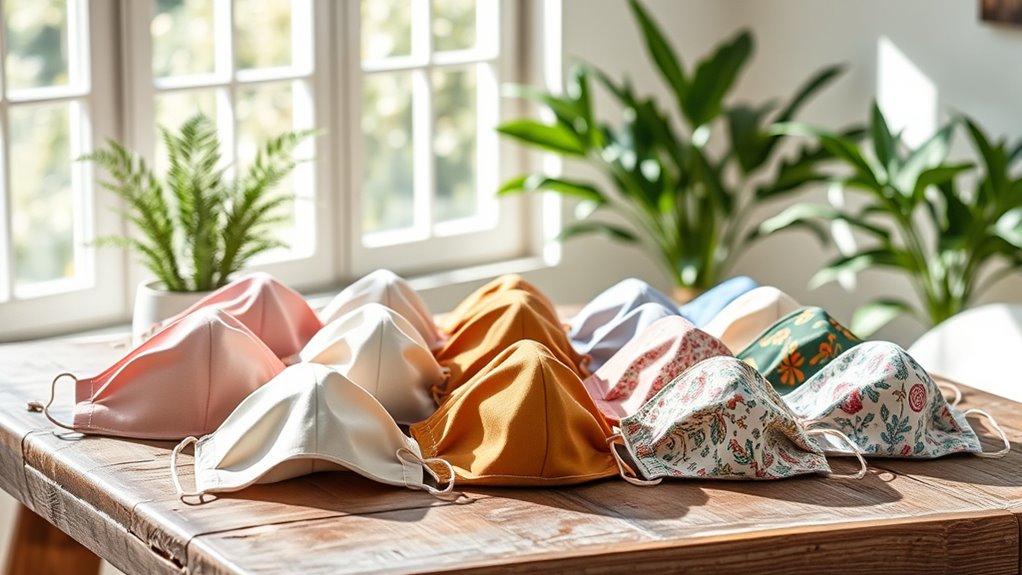 Caring for your organic cotton mask is like tending to a delicate garden. I recommend washing it after each use in warm water with gentle detergent. Avoid bleach and fabric softeners—they can damage the fibers. Air dry or tumble dry on low heat. Store it in a clean, dry place. Proper care keeps your mask effective, comfortable, and eco-friendly, ensuring it remains a trustworthy part of your daily routine.