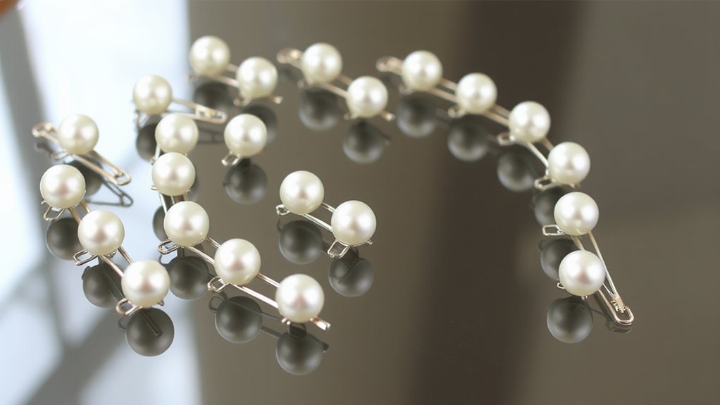 Absolutely, there are hypoallergenic pearl hair clips perfect for sensitive scalps. I’ve found options crafted from surgical-grade stainless steel or titanium, which feel gentle and smooth against my skin. These clips sparkle with the same elegance but prevent irritation. When shopping, look for labels that specify hypoallergenic or nickel-free materials. I love these because they let me enjoy adding a touch of class without worrying about discomfort or allergic reactions.