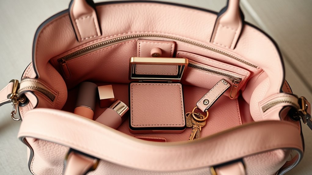 Think of your purse as a garden, and these organizers as the careful tenders. With the right insert, your bag blooms with order and style, each pocket a petal guiding your essentials smoothly. When you choose wisely, you cultivate a space where chaos turns to calm, and every item finds its place like a flower in perfect harmony. Let the right organizer be your gardener, and watch your bag flourish effortlessly.