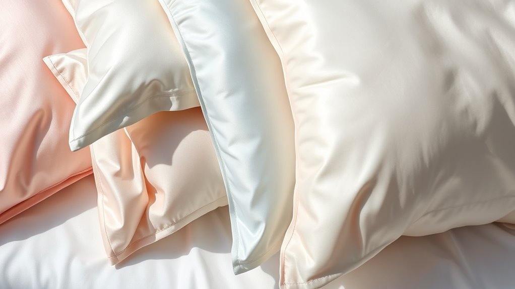 If you’re looking for the best silk pillowcases to boost your hair and skin, I recommend options crafted from high-quality mulberry silk like 6A or 25 Momme for durability and a luxurious feel. Features like hidden zippers, perfect sizing, and thoughtful construction guarantee a great fit and long-lasting use. These pillowcases reduce friction, minimize wrinkles, and prevent hair breakage. To discover the top picks that combine style, comfort, and benefits, keep exploring further.
