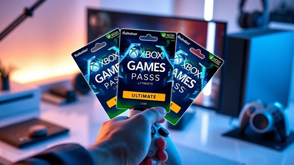 When selecting an Xbox Game Pass Ultimate digital code, it’s vital to verify compatibility with the devices I plan to use. I need to make certain the code works with my Xbox console, Windows PC, or mobile device via cloud gaming. Checking the device’s operating system is essential because it must support the Xbox app or Xbox Cloud Gaming services. I also want to confirm that I can redeem the code through my preferred platform, whether that’s the Xbox Store, Microsoft account, or a trusted third-party retailer. Additionally, I should be aware of any regional restrictions or app update requirements that might affect redemption. Since Xbox Game Pass Ultimate offers cross-platform play, verifying compatibility guarantees I can seamlessly enjoy my games across all my devices.